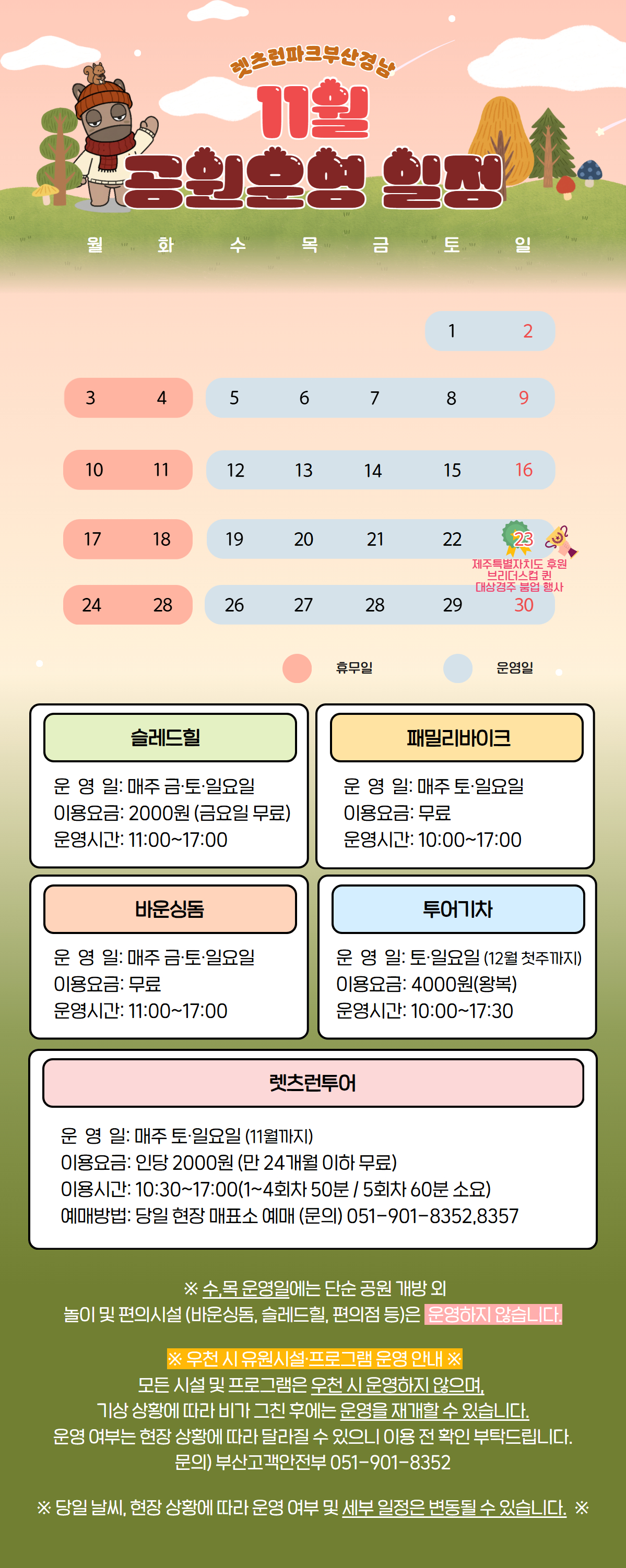 [부경] 11월 공원운영 일정(11.1~11.30)