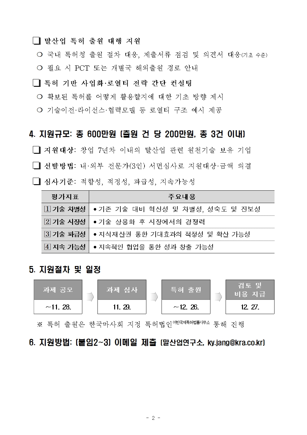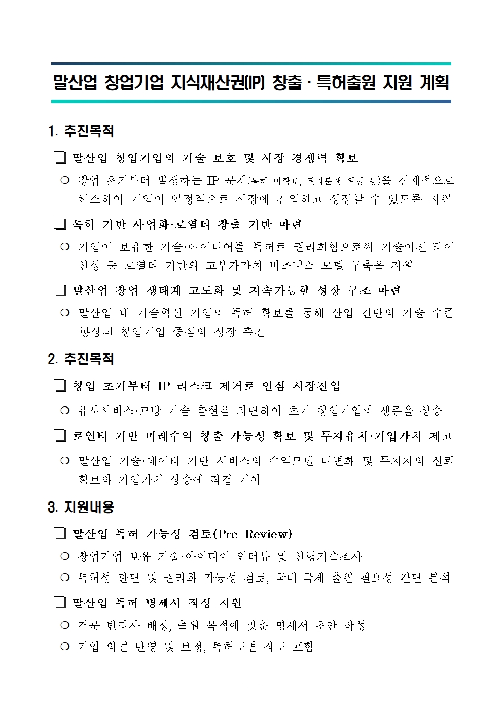 말산업 창업기업 지식재산권(IP) 창출·특허출원 지원 기업 공모(기한연장: ~12.4)