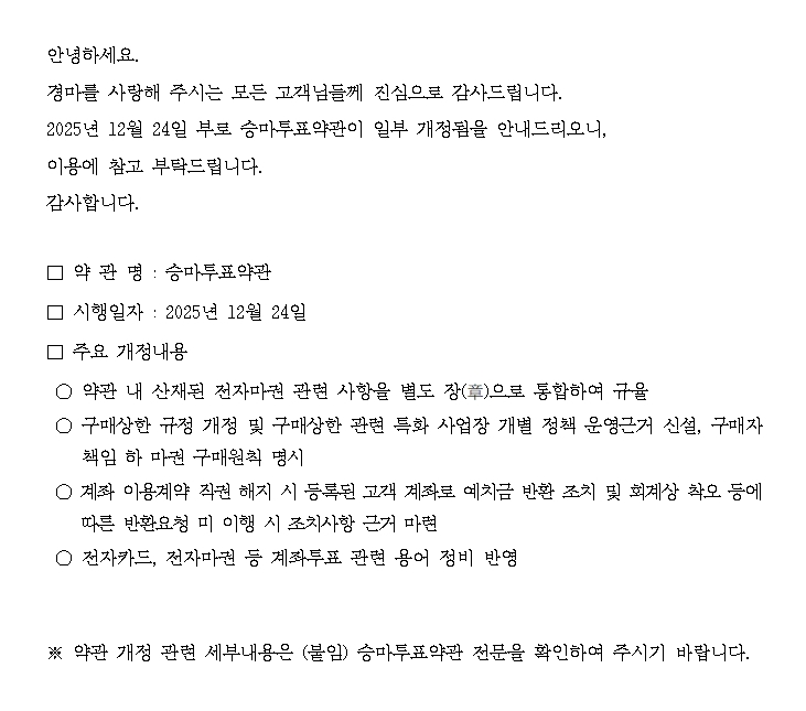 「승마투표약관」 개정 안내('25.12.24. 시행)