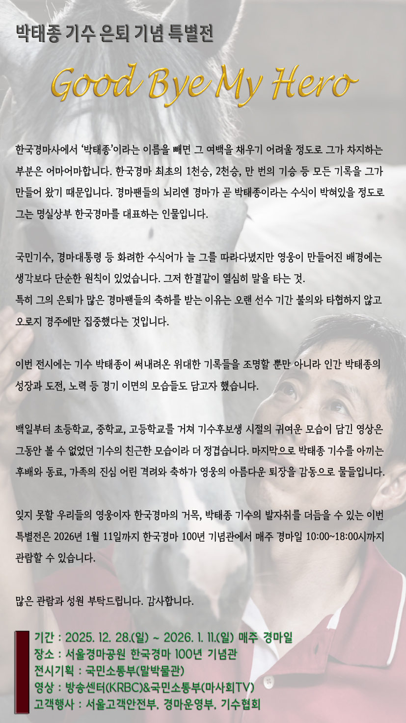 [서울] 12월 28일 박태종 기수 은퇴 기념 특별전 'Good Bye My Hero' 개막